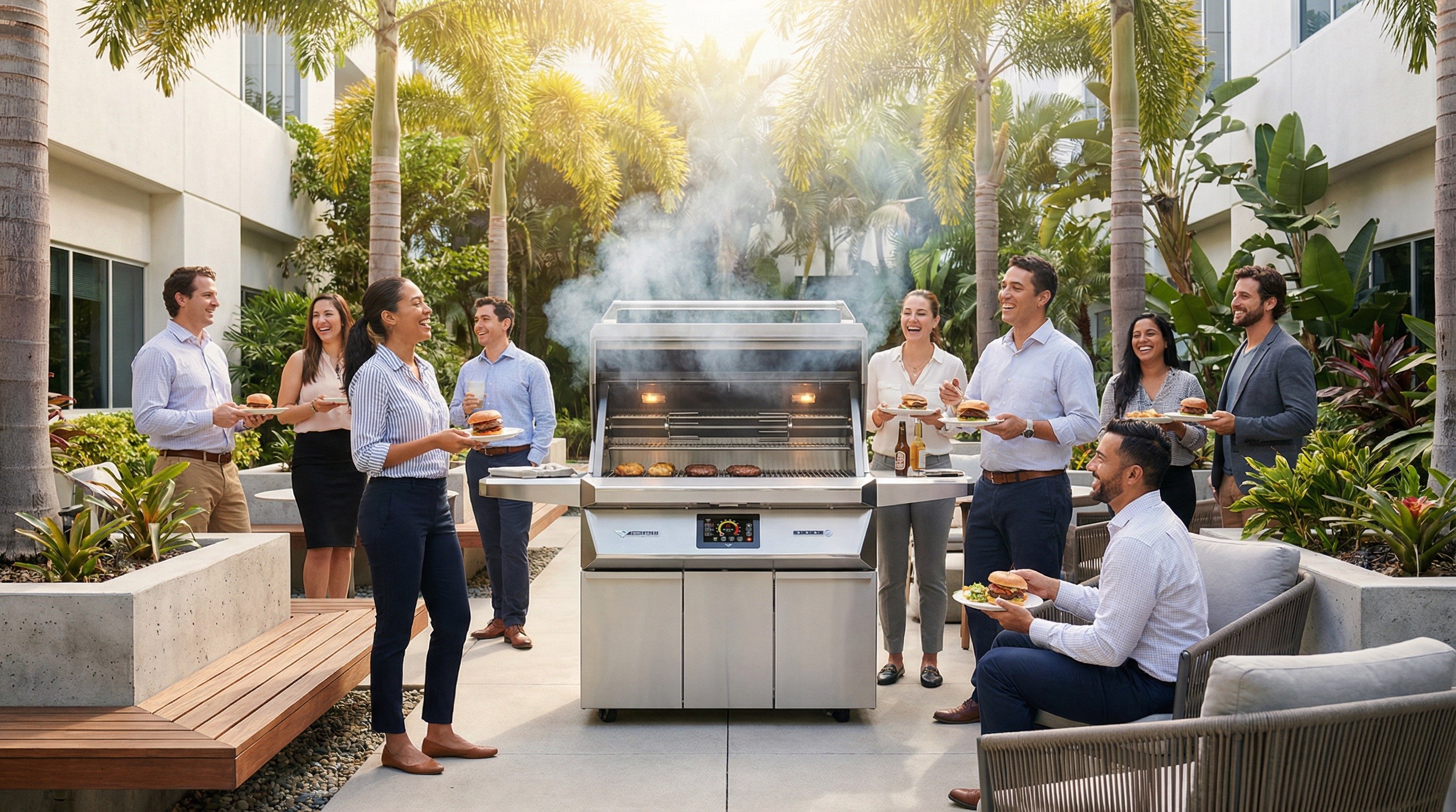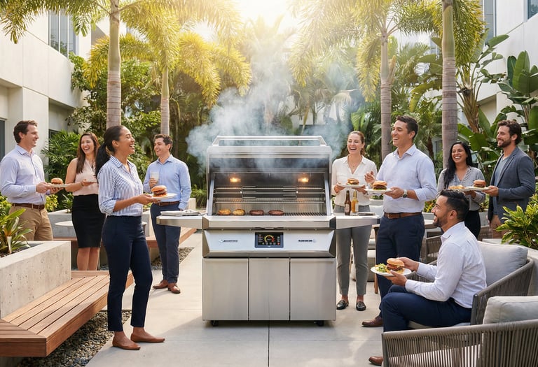 A turnkey outdoor amenity program for courtyards, campuses & HQs. Premium grills plus vetted island options.